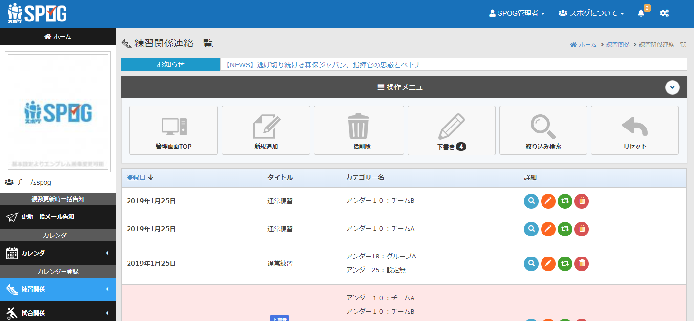 2019年1月24日にスポグのバージョンアップを行いました。変更点は以下となります。