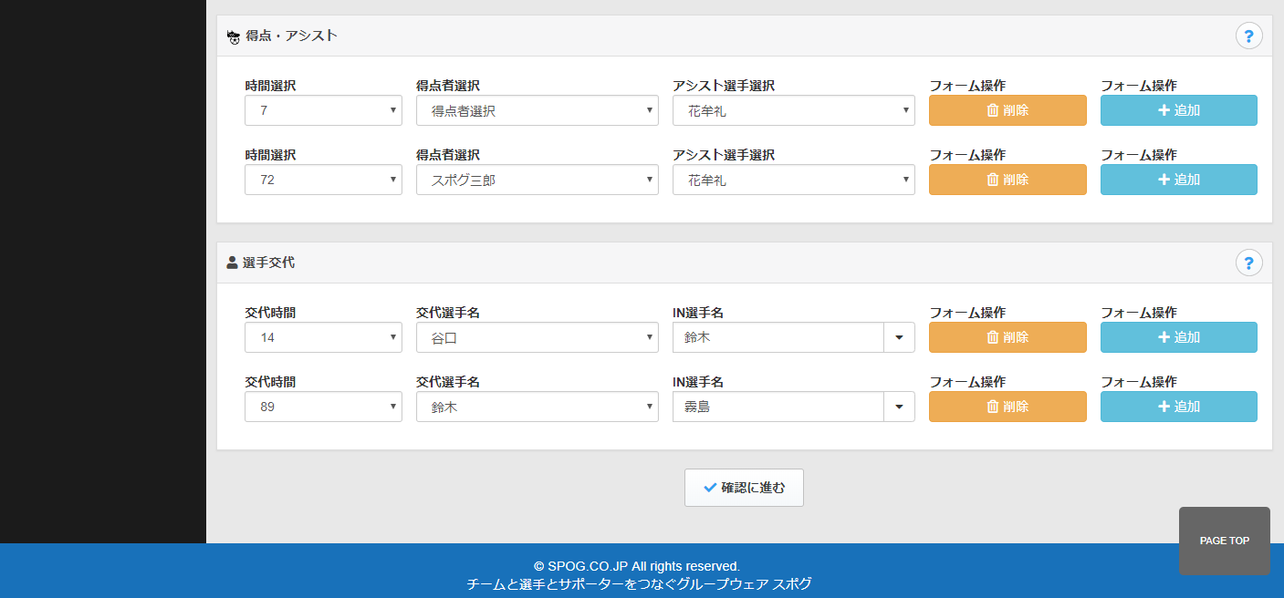 試合結果およびポジション選択の選手名選択部分を変更いたしました。
