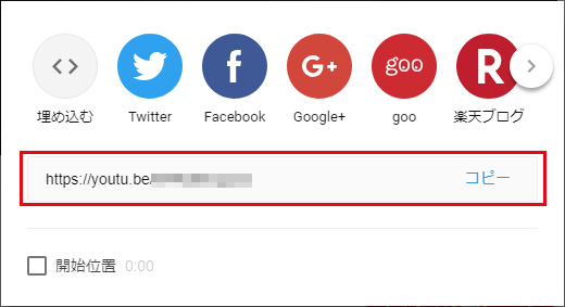 リンクを追加したい動画の「共有」をクリックしてリンクの共有を開いて、赤枠の部分のURLをコピーして貼り付けをして下さい。